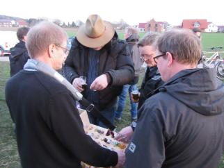 Damit keiner frieren muss und um witterungsunabhängiger zu sein, wird am Sonntag nicht nur an sondern auch in der Feldscheune gefeiert. Dazu werden der Getränkepavillon und Heißpilze, Tische und Bänke in der Scheune aufstellt. Neben Würstchen vom Grill werden altbewährte aber auch exotische Getränke angeboten.